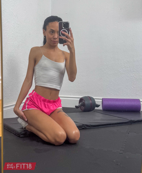 Bianca BangsBianca claims she doesn't do much do keep her slim frame because of her asian genes. This half black, half vietnamese beauty can't say she is good at math, but she is definitely good at being hot and horny. My dick perked up watching her do squats, pointing that tiny asian ass of hers at me. I wanted to fuck her immediately. Seeing my arousal, she offered to suck my dick. She got on the floor and wrapped her lips around my throbbing cock. She pulled down her top so I could get a good look at those perky little tits. I gestured her to get on all fours so I could feel that tiny ass press against my cock while I doggied her. Her pussy was so tight. I couldn't hold out any longer and came inside her, but she didn't mind.