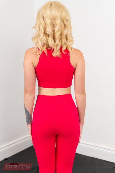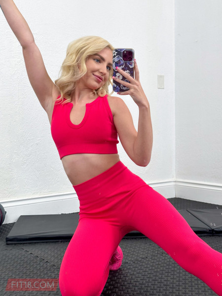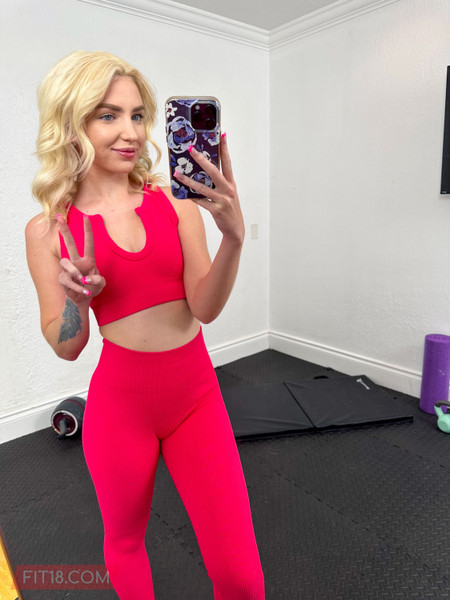 Britt BlairDrawn to a gorgeous ass in hot pink pants on the floor, I was taken aback by the woman who turned around to be my stepsister Britt. With a hair of platinum blonde and stunning blue eyes, she is very attractive and she knew how I felt. She reciprocated, suggesting we act on our desires at the gym since it was away from home and unlikely to be caught by our parents. She got on her knees and started sucking my cock, before pulling off the pants to ride it. I flipped her onto the floor and slapped her ass before we fucked on all fours, at one point pulling back on her arms to fuck her harder and faster. Her tight pink pussy felt so good that I came quickly and she loved having her stepbrother's cum inside her.